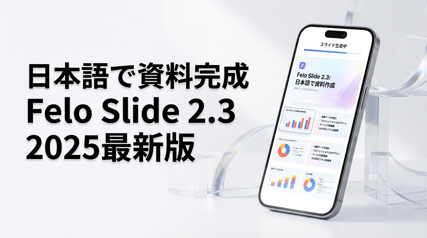 資料づくりは、構成を考えてデザインを整える手戻りが発生しやすく、時間がかかりがちです。Felo Slide 2.3は、日本語のテキストを入れるだけで、構成から見た目まで短時間で形にできます。この記事では、2025年のアップデート内容と、実際に使って感じた良かった点をシンプルにまとめます。