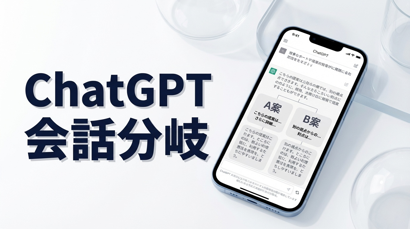会話が長くなるほど「この時点から別案を試したい」が出て、戻る・やり直すが増えていました。ChatGPT 会話分岐を使うと、同じ会話の途中から枝を作って比較でき、判断までの往復が減りました。ここでは、業務で使った体験をもとに、並行比較と途中からのやり直しに絞って書きます。