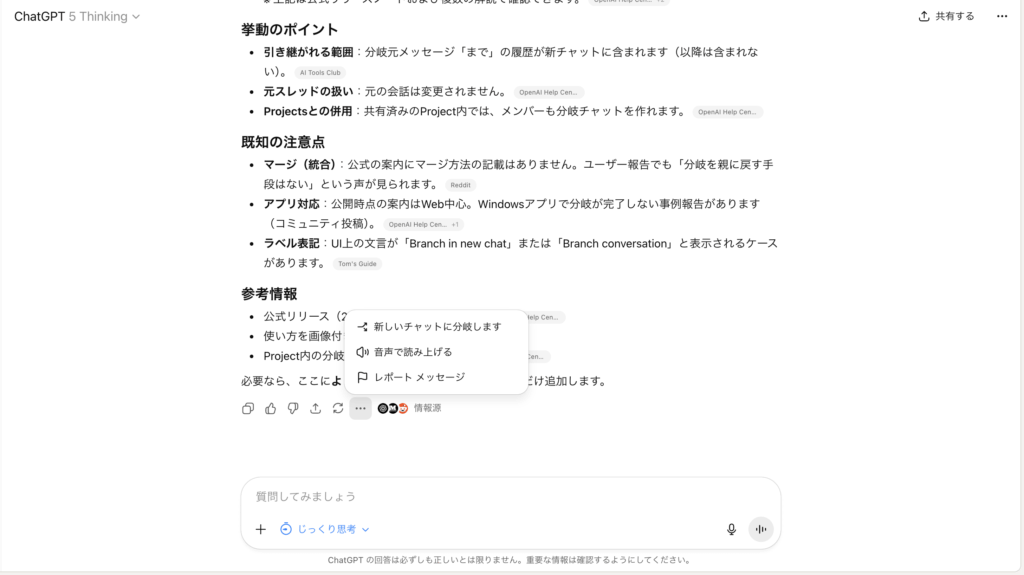 ChatGPT 会話分岐の使い方(最短)
