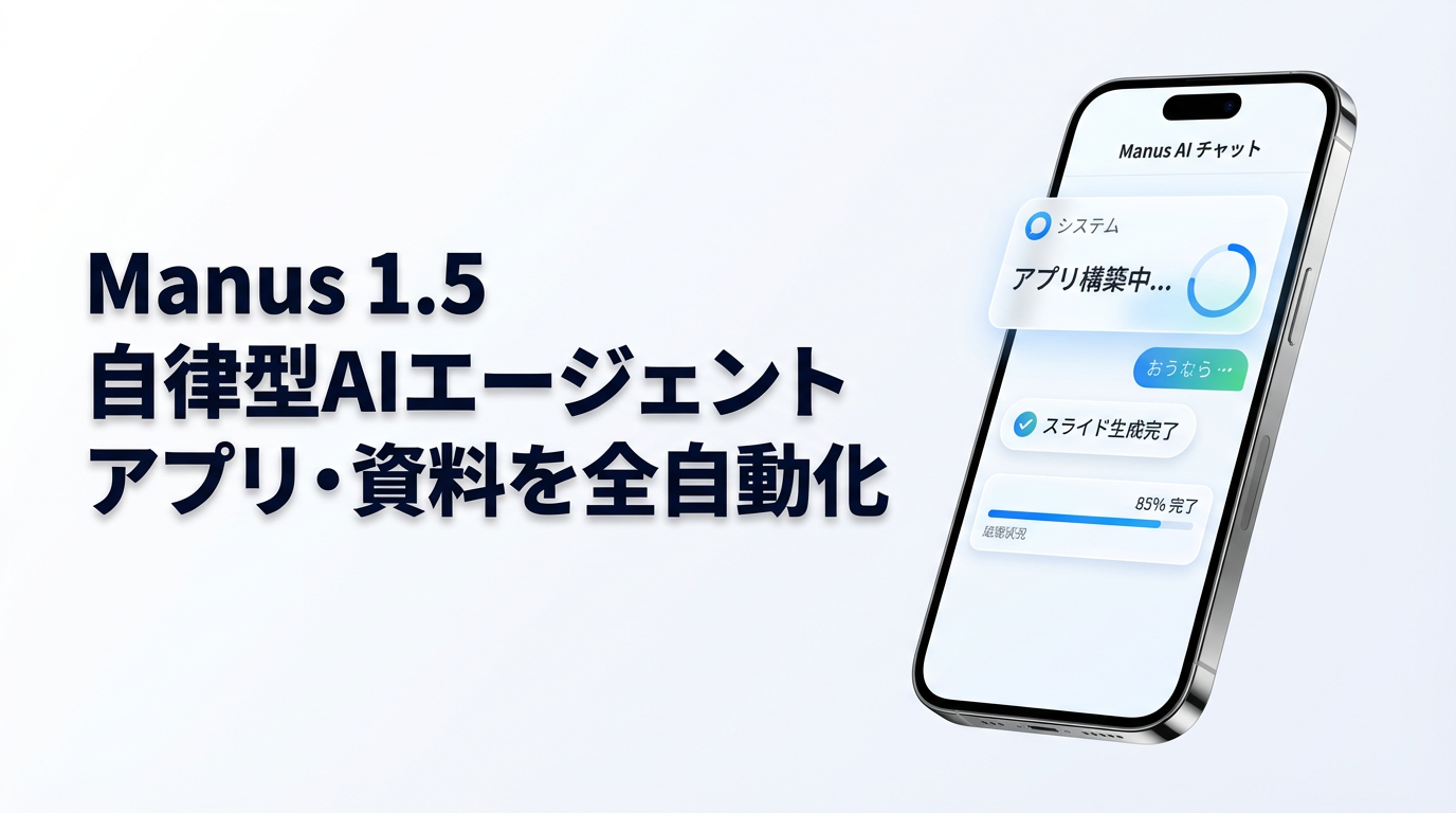 Manus 1.5は、タスク完了速度を約4倍に高めつつ、フルスタックWebアプリ生成やマルチエージェント機能を強化した、自律型AIエージェントです。この記事ではまず「Manus 1.5がどんなエージェントなのか」を押さえたうえで、アップデート内容、料金・プラン、できること、セキュリティ、実際に使ってみた印象を順番に整理します。