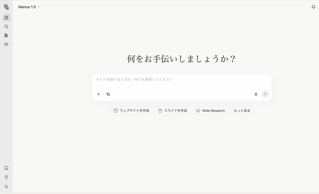 Manus 1.5の基本的な使い方は、次の三つを自然言語で伝えるところから始まります。