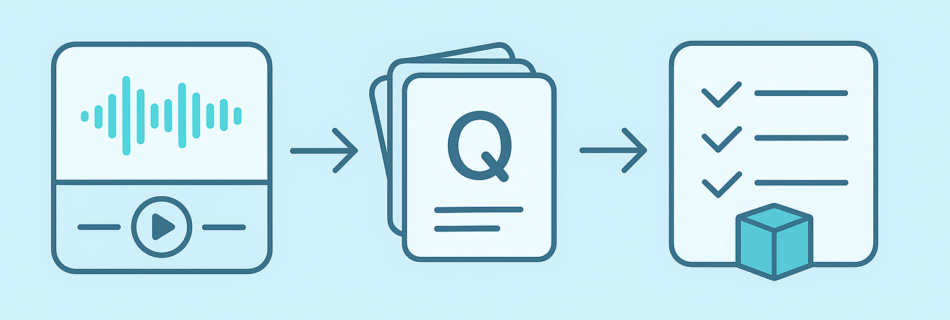 NotebookLMの新機能を“通し”で使いました。同じ資料で音声を4パターン聴き比べ、フラッシュカード化→テスト生成まで一気に回すと、準備から復習までの切り替えが軽くなりました。短い音声で入口をつくり、必要なところだけ …