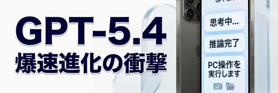 GPT-5.4は、推論・コーディング・PC操作・エージェントワークフローを1つに統合したOpenAIの最新フロンティアモデルです。2026年3月5日にリリースされ、GPT-5シリーズの中でも特にThinkingモードの速 …